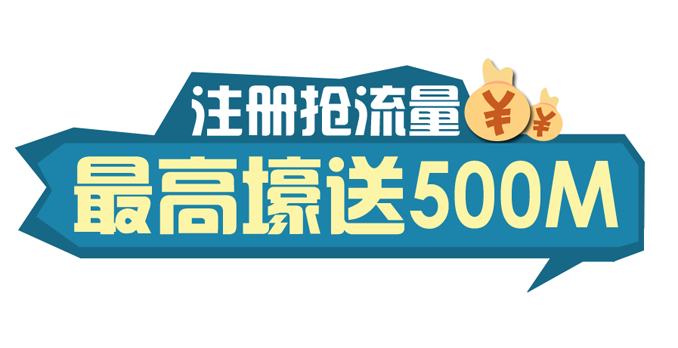 新用户注册并登录可参与抢流量活动,额度随机,最高500M!