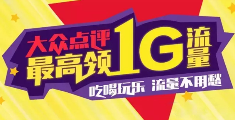 吃喝玩乐流量不用愁~来大众点评注册领30M-1G流量!